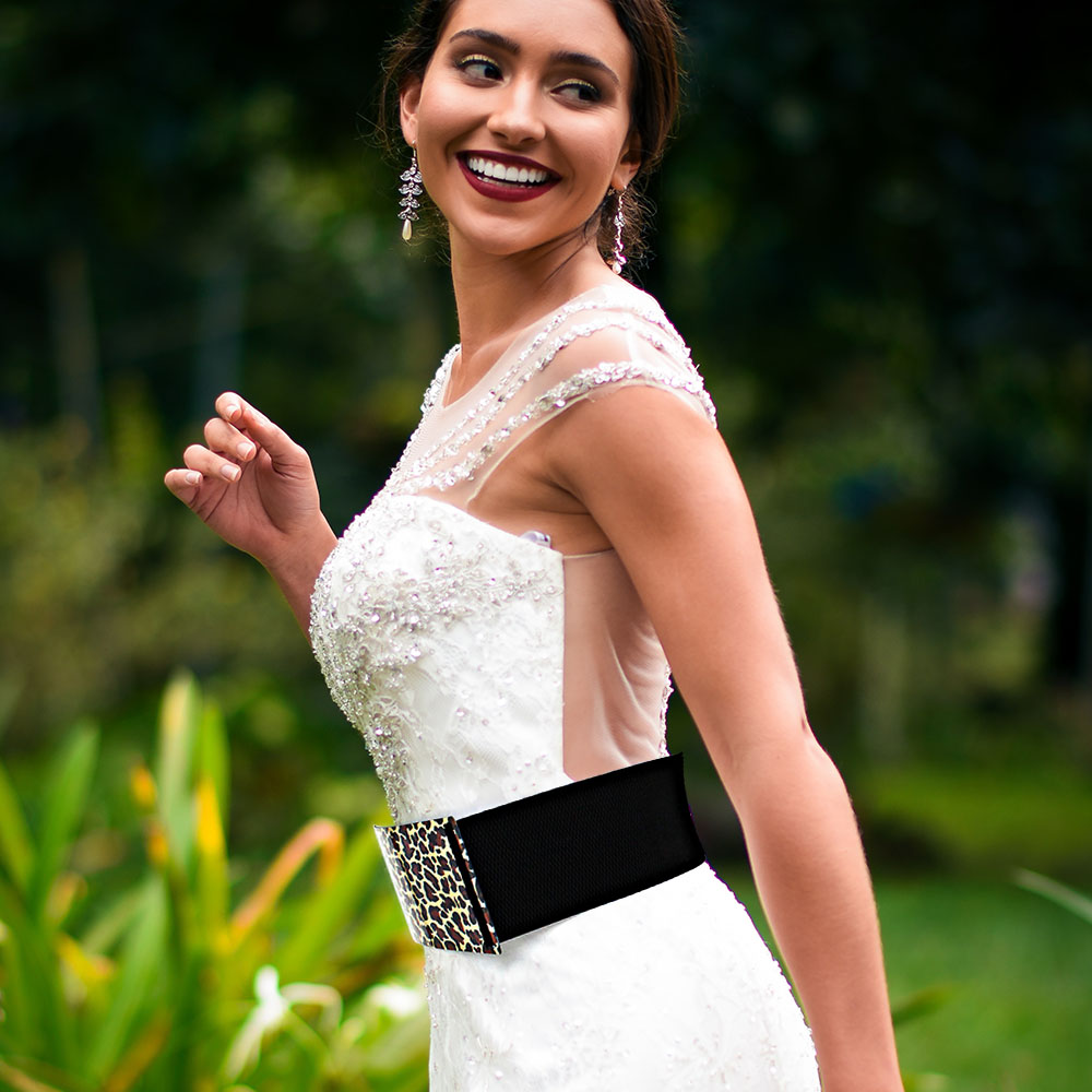 Bold Leopard Metal Plate Elastic Belt