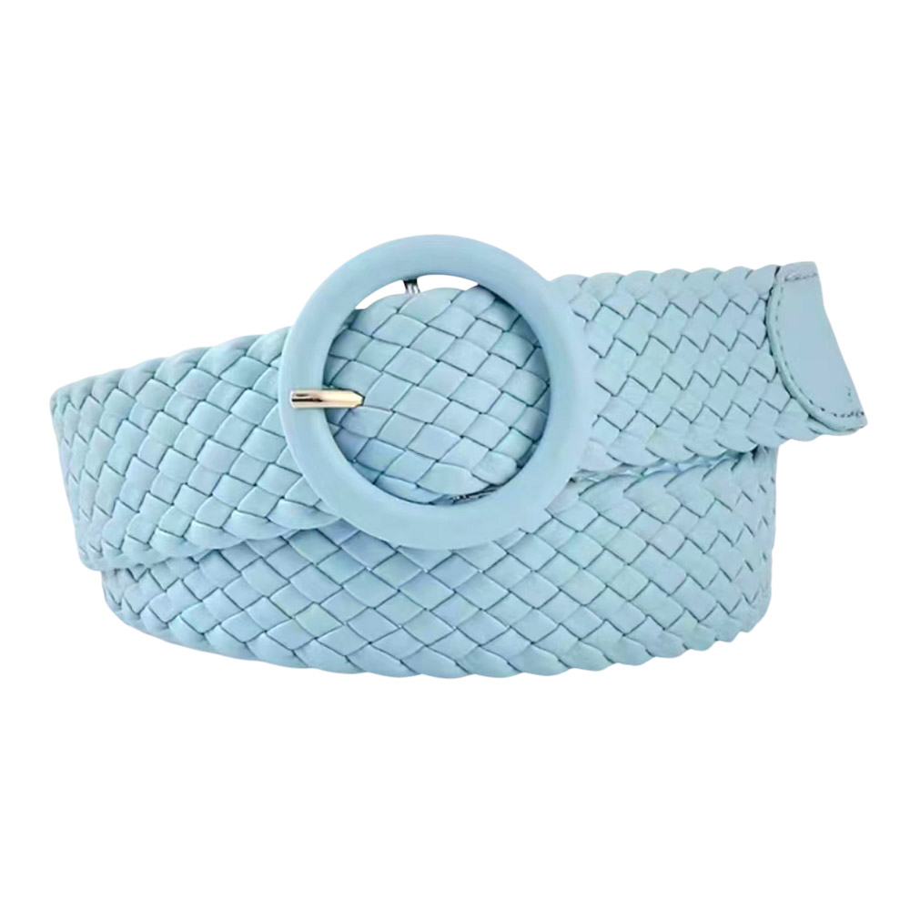 • Chic braided faux leather belt featuring a sleek round buckle. Perfect for adding texture and a polished finish to dresses, jeans, or skirts for both casual and refined looks.
