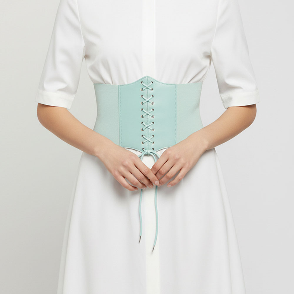 • Elegant waist belt corset featuring a front lace-up design with adjustable tie closure. Perfect for pairing with dresses, shirts, or tunics, this fashion accessory enhances your silhouette while adding a chic and structured touch to any outfit.