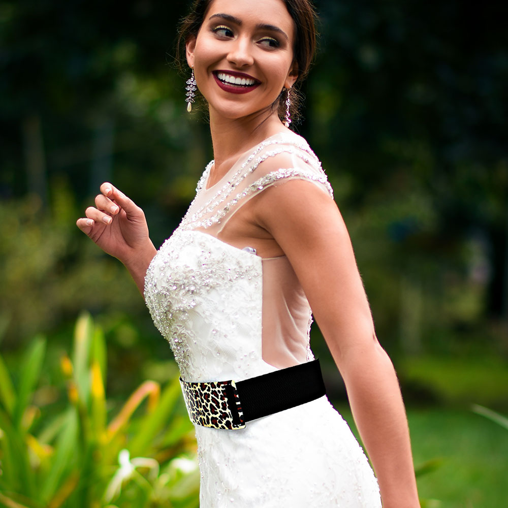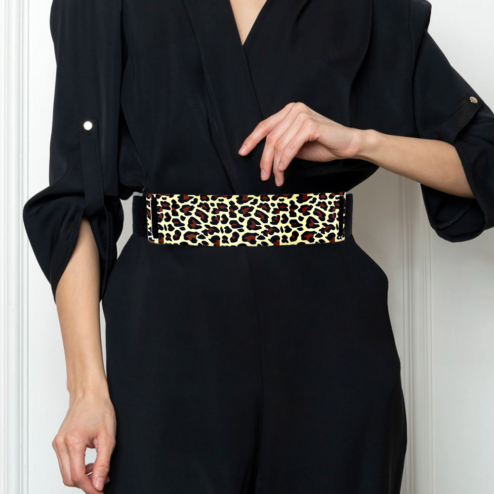 Oversized Leopard Metal Plate Stretch Elastic Belt