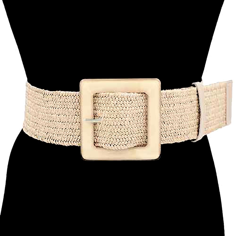 Resin Square Buckle Accent Raffia Adjustable Belt