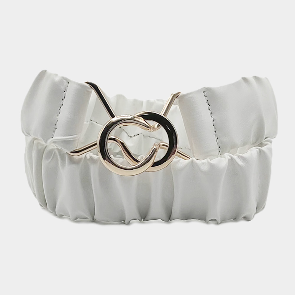 Details • Size : 1.25" H • Stretchable • Elevate your waistline with this stylish ruched stretch belt, featuring a soft faux leather finish and a sleek metallic clasp. A perfect accessory to cinch dresses or blouses with modern flair and comfort.