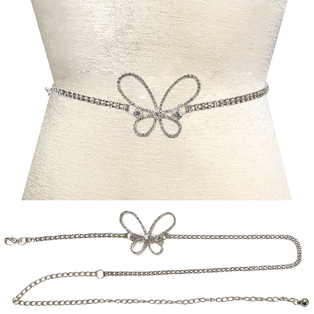 Stone Paved Butterfly Pointed Rhinestone Chain Waist Belt