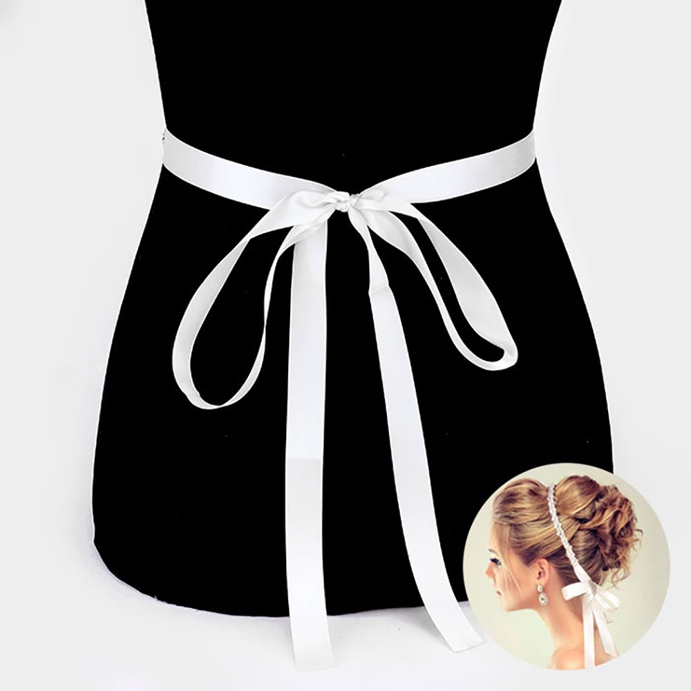 Teardrop Stone Accented Sash Ribbon Bridal Wedding Belt / Headband