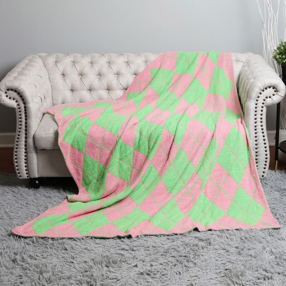 Details • Size : 50" X 60" • Material : 100% Poly Micorfiber • Care: Machine Wash - Cold, Do Not Bleach, Lay Flat To Dry, Do Not Iron, Do Not Dry Clean • Add a touch of modern comfort with this soft diamond check throw blanket. Its elegant design makes it a stylish layer for sofas or beds, offering cozy warmth and a refined look for everyday relaxation.