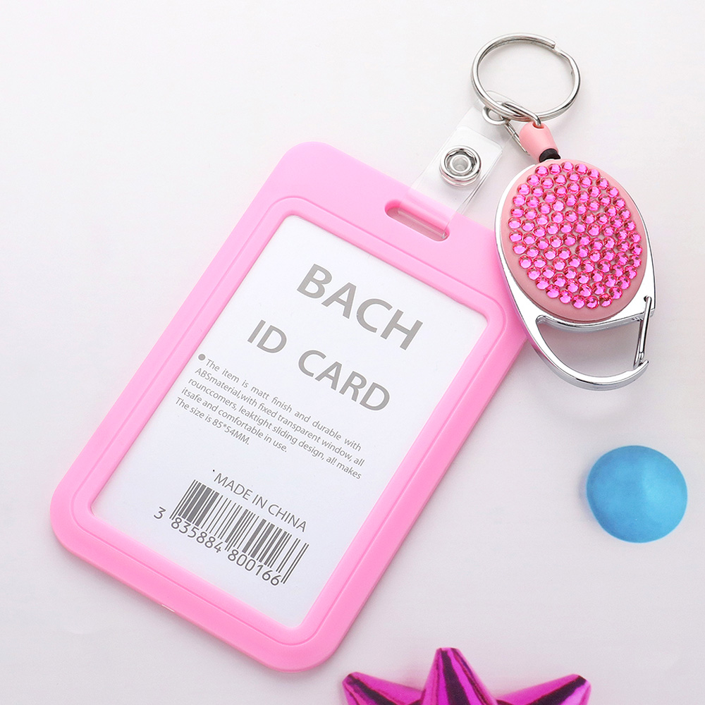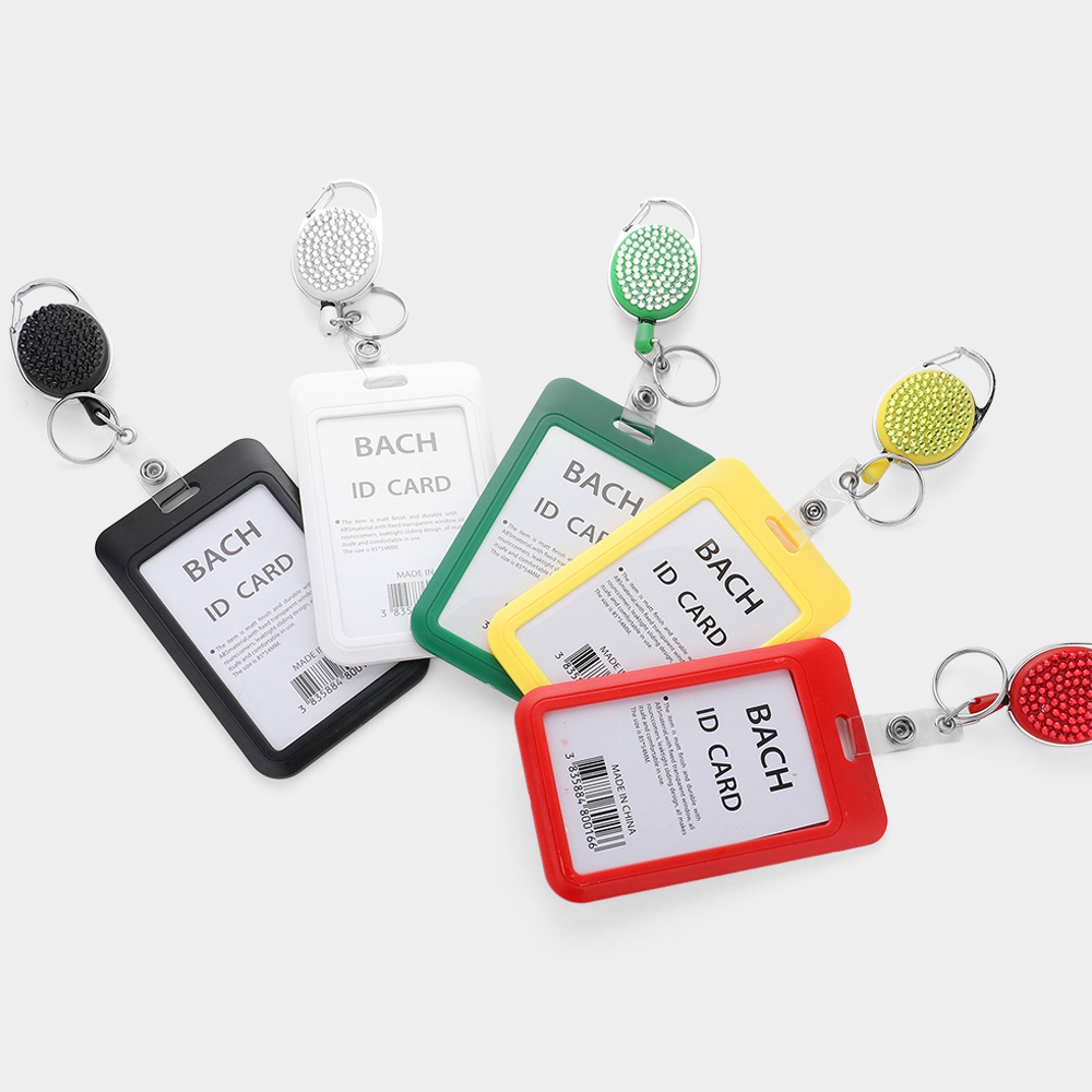 Bling Studded Tag Pointed Retractable ID Card Holder