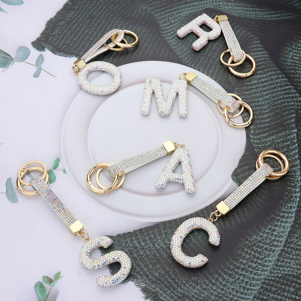 -K- Bling Studded Monogram Initial Keychain Bag Charm