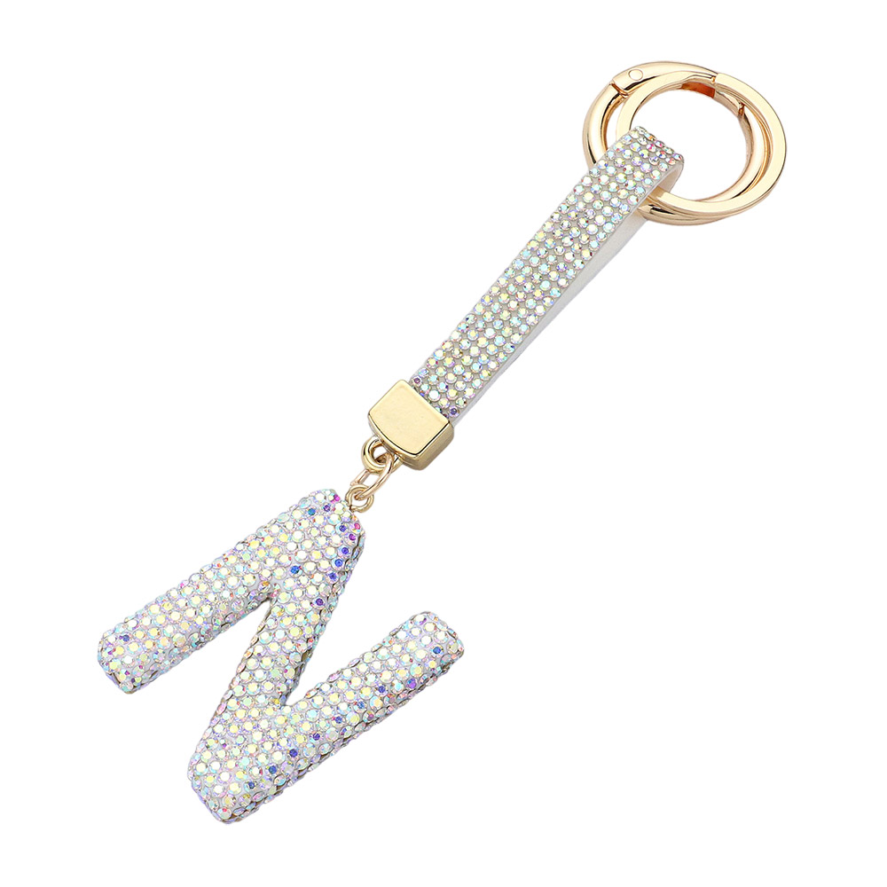 -N- Bling Studded Monogram Initial Keychain Bag Charm