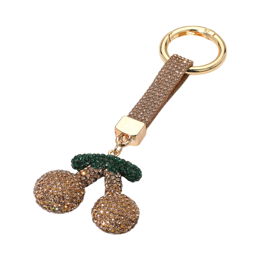 • Brighten your day with this sparkling cherry keychain. Featuring twin rhinestone cherries and a bold design, it's perfect for accessorizing your keys or handbag with a touch of playful charm and shine.