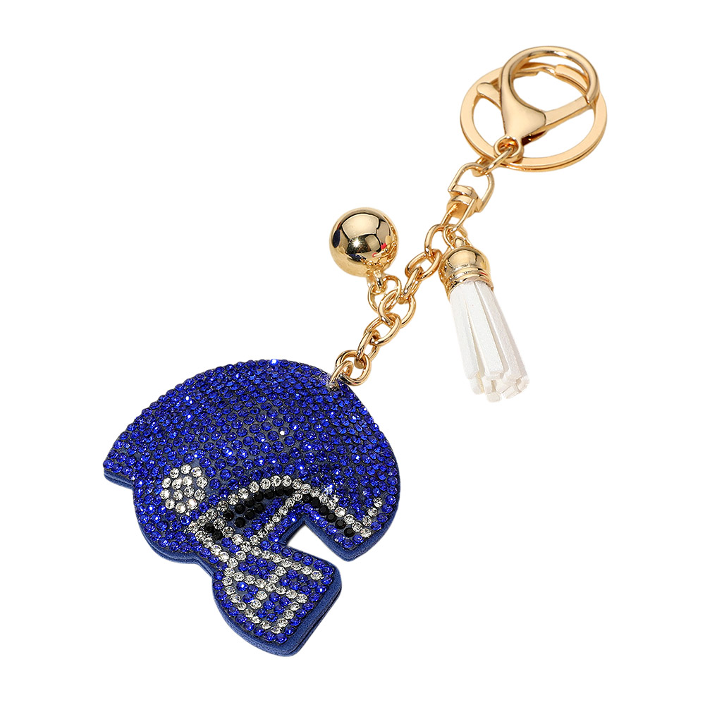 • Show off your team spirit with this football helmet rhinestone keychain, featuring a dazzling design, metallic hardware, a tassel accent, and a mini bell. Perfect for sports fans, this fun accessory adds game-day energy to your keys, bag, or backpack.