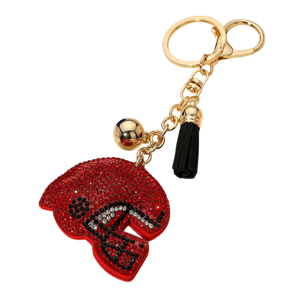 • Show off your team spirit with this football helmet rhinestone keychain, featuring a dazzling design, metallic hardware, a tassel accent, and a mini bell. Perfect for sports fans, this fun accessory adds game-day energy to your keys, bag, or backpack.