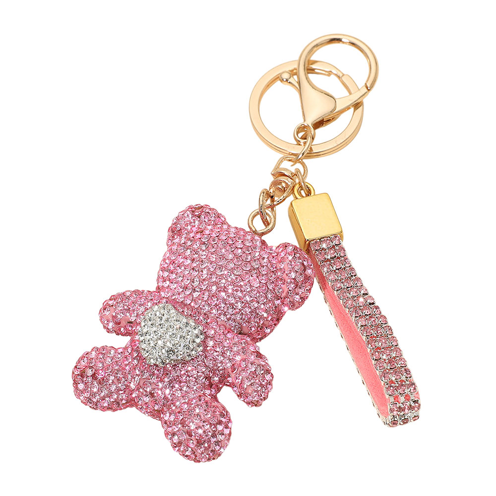 Details • Size : 5" L, 1.9" X 2.25" • Charming rhinestone bear keychain with matching wrist strap, featuring a sparkling heart accent for a playful touch. Perfect as a bag charm, accessory, or gift, adding shimmer and personality to keys, totes, and backpacks. • Lead and Nickel Compliant