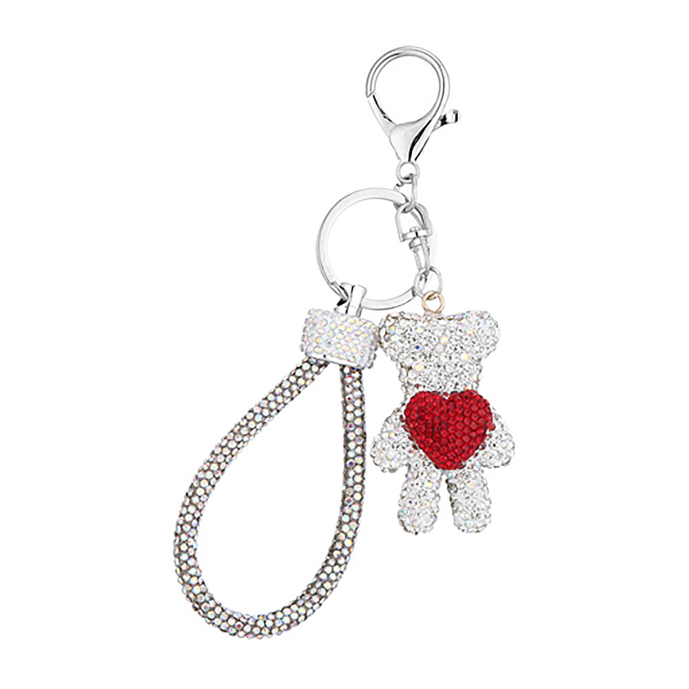 Details • Size : 5" L, 1.4" X 2.2" • Charming heart bear rhinestone keychain with matching strap, designed with sparkling stones and a secure clasp. Perfect for bags, keys, or gifting, this adorable accessory adds a touch of shine and playful style to everyday carry items. • Lead and Nickel Compliant