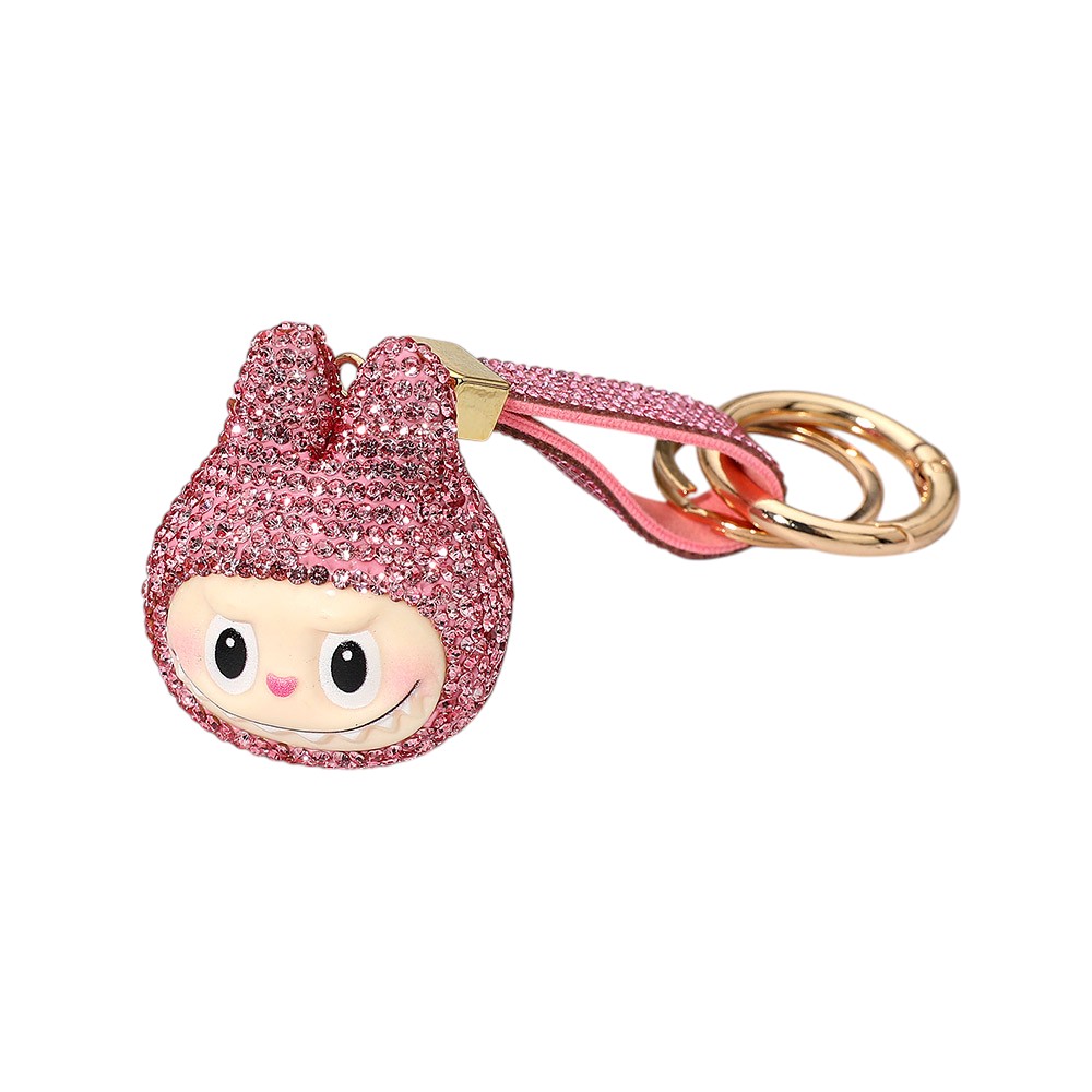 Details • Size : 1.7" X 2", 5.5" L • Adorable character keychain embellished with sparkling rhinestones and a matching wrist strap. Perfect for decorating handbags, backpacks, or car keys. A fun and stylish accessory that adds charm, shine, and personality to your everyday essentials or makes a delightful gift.