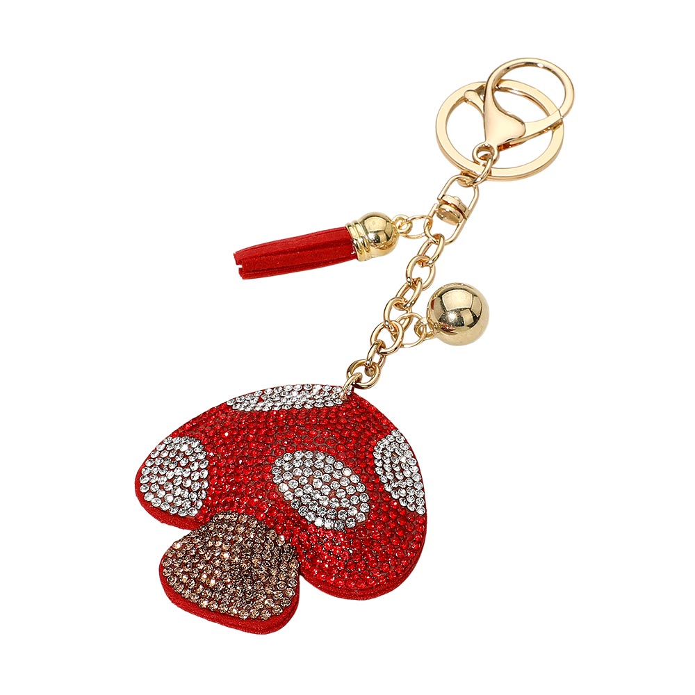 Details • Size : 2.5" X 2.5", 6.5" L • Adorable mushroom-shaped keychain adorned with sparkling rhinestones and a tassel accent. A fun and eye-catching accessory to decorate keys, handbags, or backpacks. Perfect for adding a touch of whimsy and shine to your everyday look or gifting to someone special. • Lead and Nickel Compliant