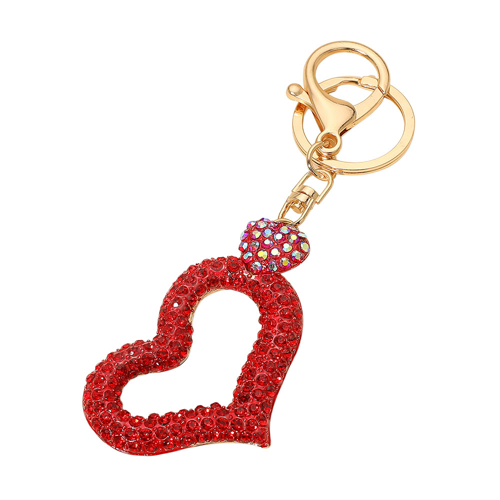 • Shimmering open-heart keychain with crystal detailing, paired with a small heart charm and secure clasp. Perfect as a bag accessory, keyring dĂ©cor, or a thoughtful gift.