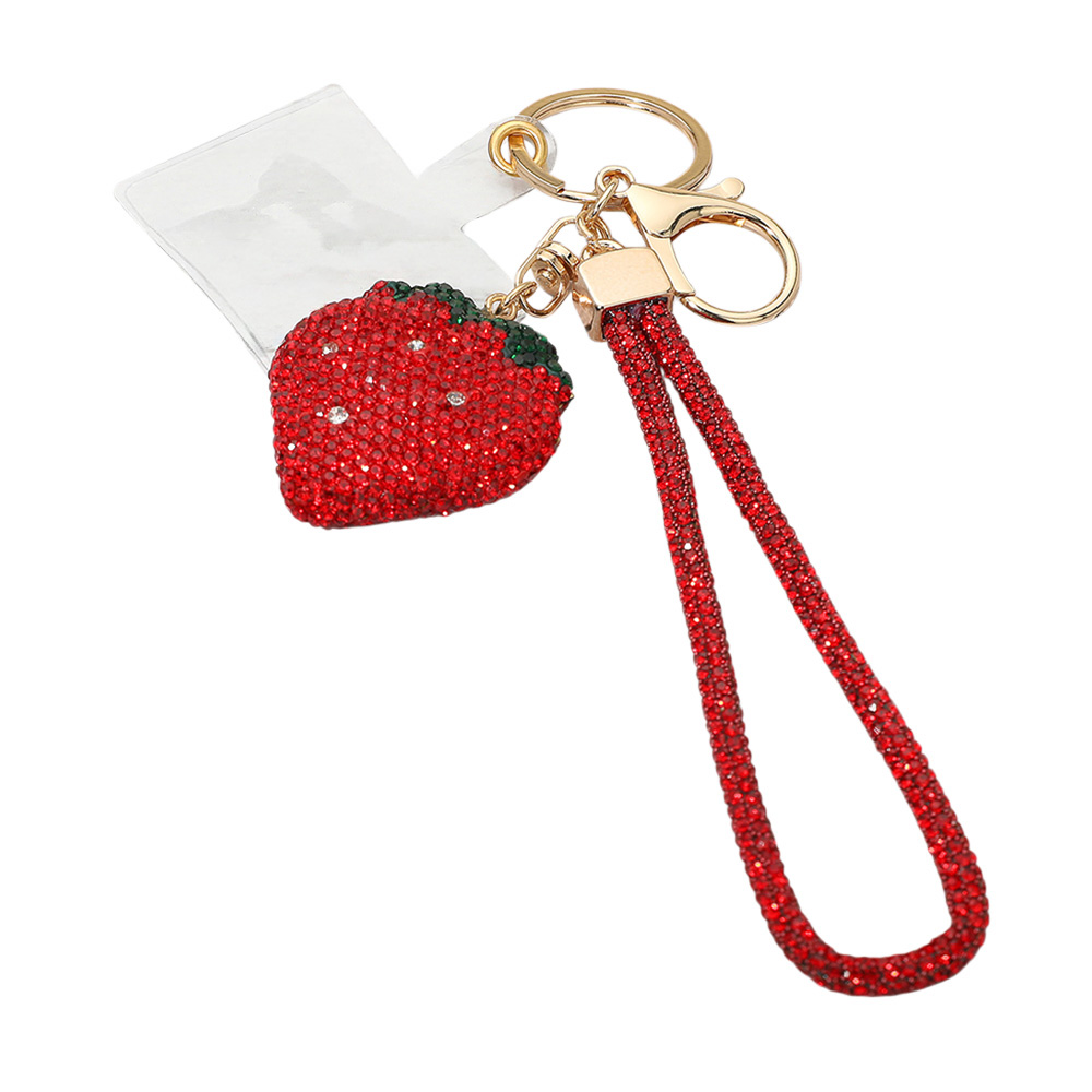 Bling Studded Strawberry Strap Keychain Bag Charm Phone Charm
