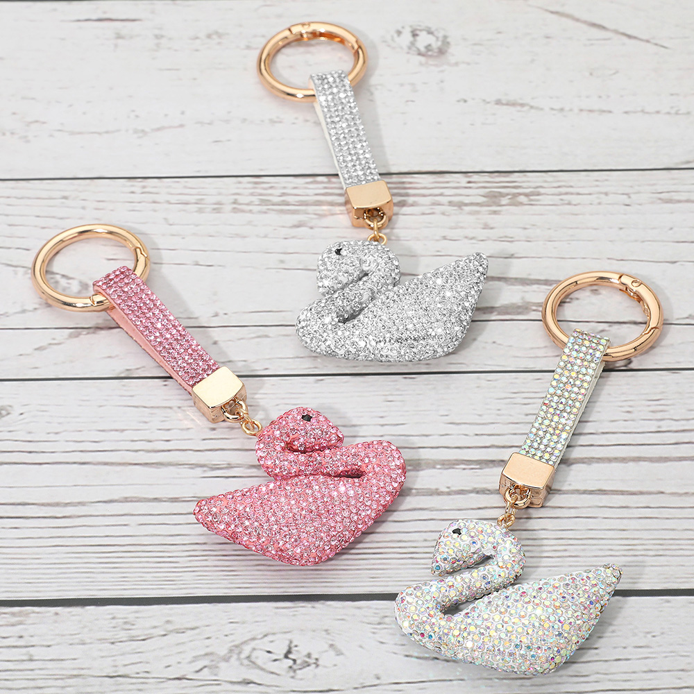 • Elegant swan-shaped keychain adorned with sparkling rhinestones, paired with a matching strap for added charm. Perfect for accessorizing keys, handbags, or as a thoughtful gift with timeless style.