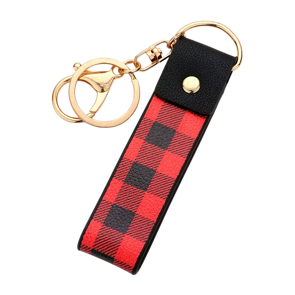Details • Size : 1" X 4" • Stay organized in style with this plaid leather keychain featuring a bold checkered design. Finished with a sturdy gold keyring and clip, it offers both durability and charm, making it a practical and fashionable accessory for everyday use or gifting.