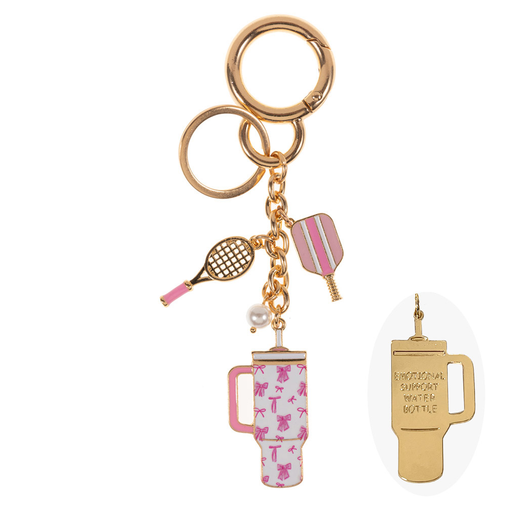 Enamel Pickleball Paddle Bow Pattern Tumbler Back Engraved Keychain Bag Charm