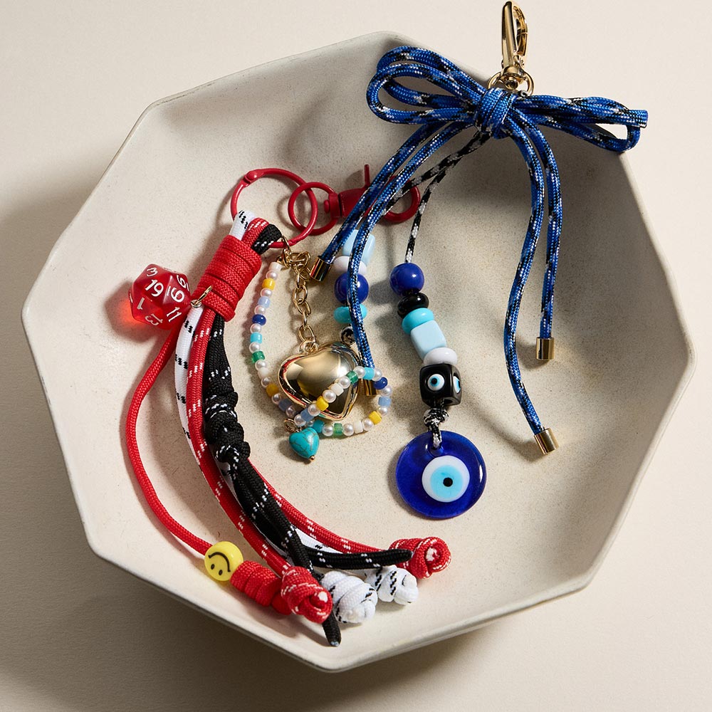 Evil Eye Charm Beaded Drop Bow Accent Keychain / Bag Charm