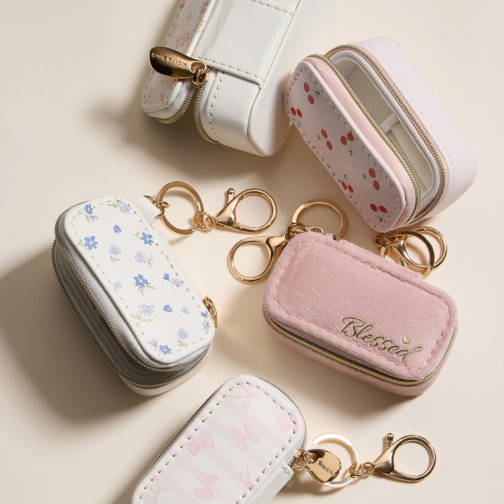 Details • Size : 3" X 1.5" X 1.5" • Zipper closure for secure storage • Polished gold-tone keyring with clasp hardware • Compact storage for rings, earrings & small jewelry • Ideal for travel, everyday use, or thoughtful gifts • Keep your jewelry safe and stylish on the go with this rectangular portable jewelry storage case keychain. Featuring a floral print design, secure zipper closure, and compartments for rings and earrings, it’s perfect for travel or daily use, combining charm and practicality in one compact accessory.