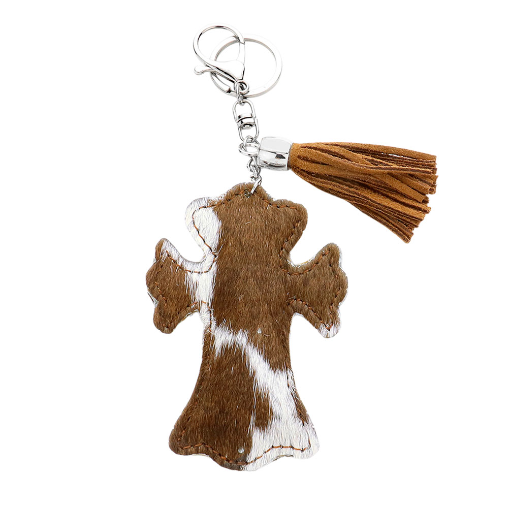 Genuine Fur Calf Cross Tassel Keychain Bag Charm