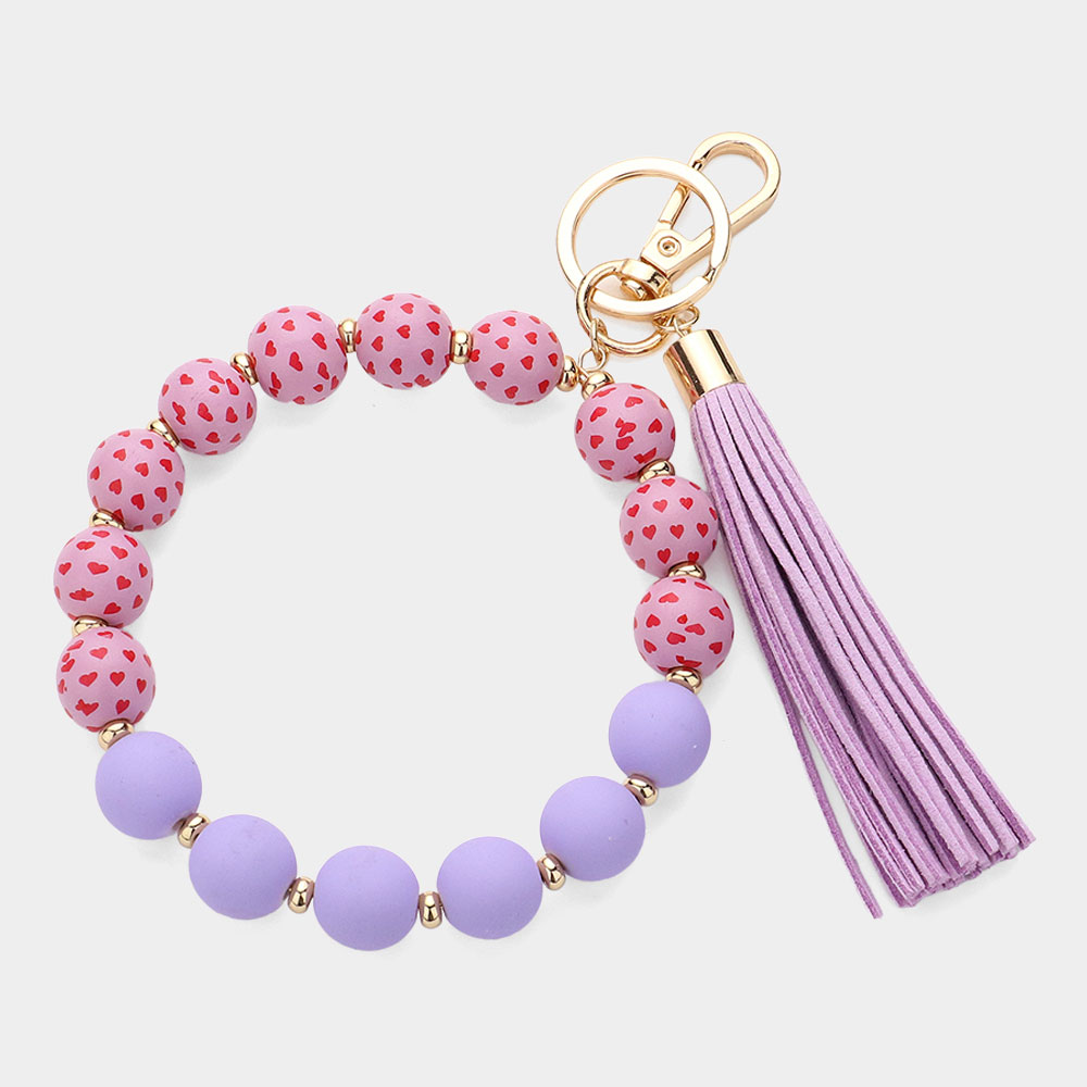 Heart Patterned Beaded Tassel Keychain / Bracelet