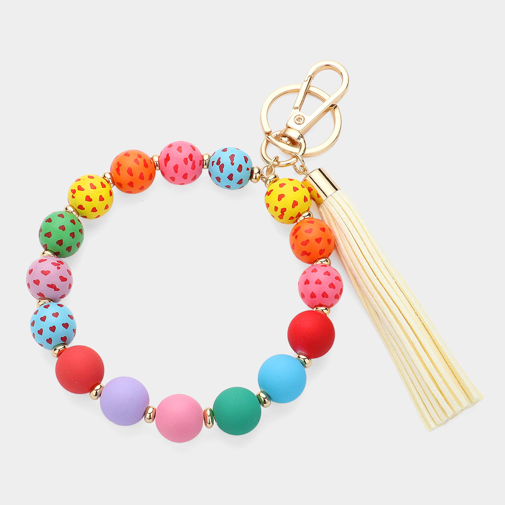 Heart Patterned Beaded Tassel Keychain / Bracelet