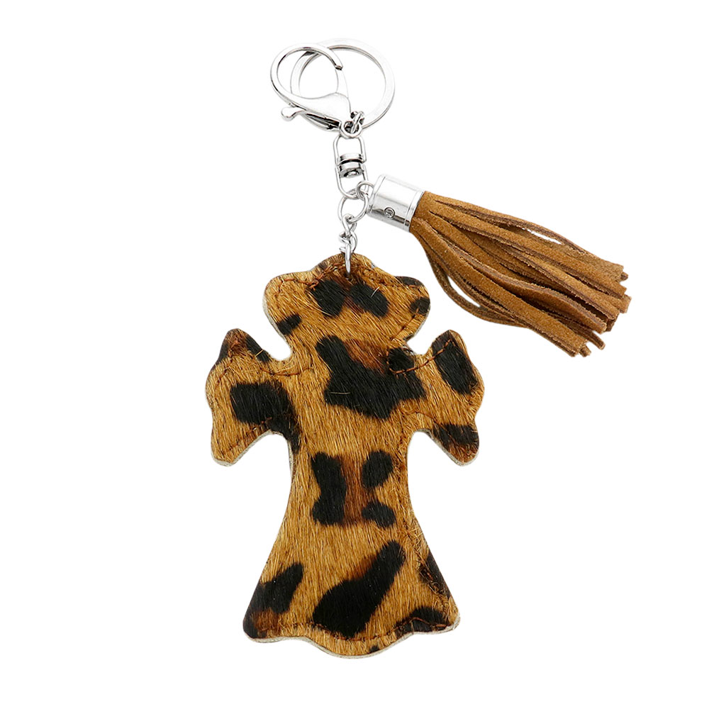 Details • Size : 2.75" X 4", 6.75" L • This cross keychain with tassel combines style and practicality, making it a meaningful accessory for everyday use. Designed with a unique finish and sturdy hardware, it adds a personal touch to your keys, bags, or backpacks while ensuring durability and charm. • Fur Color May Vary