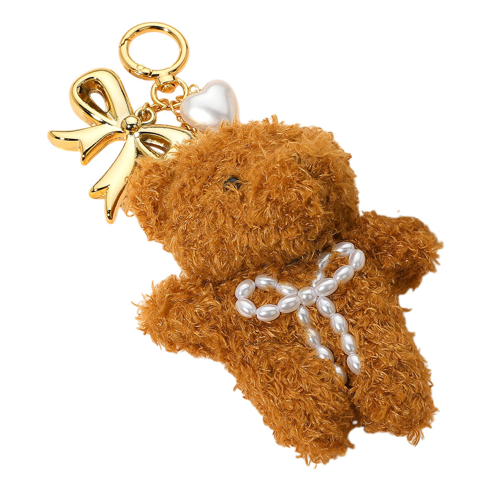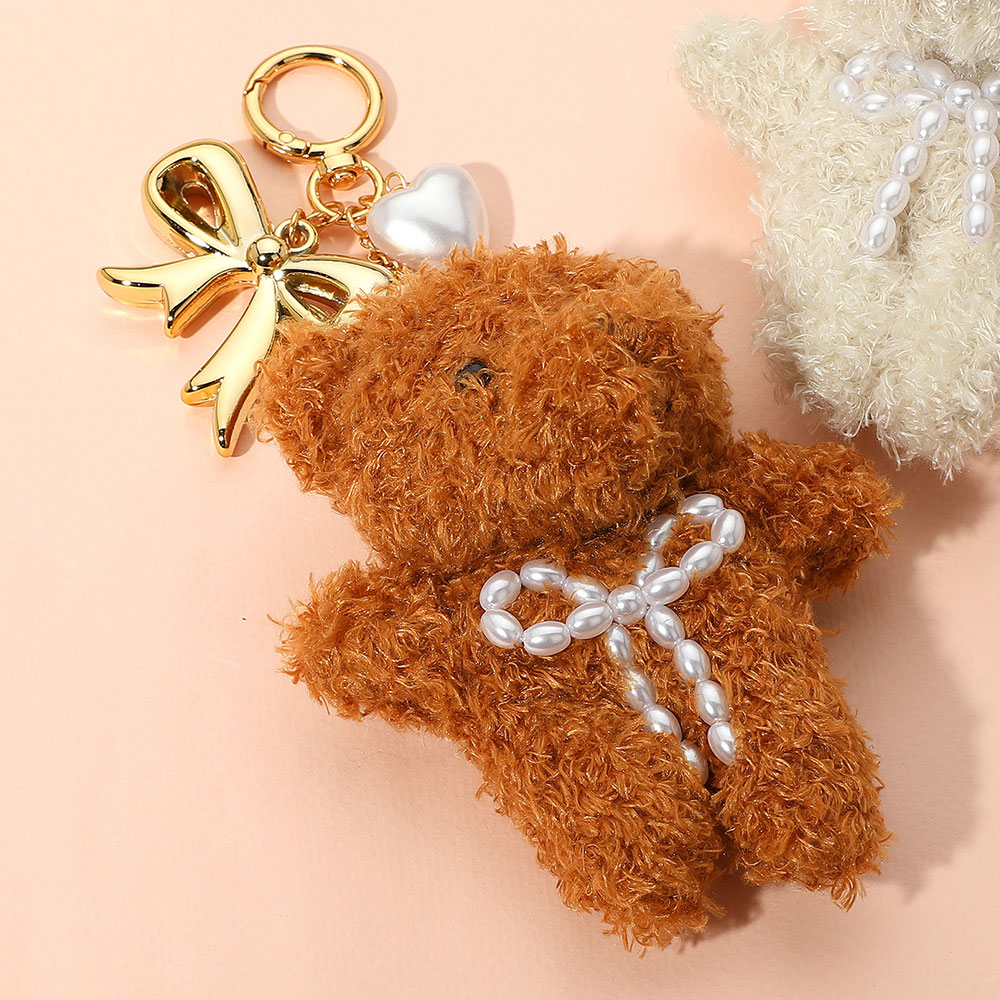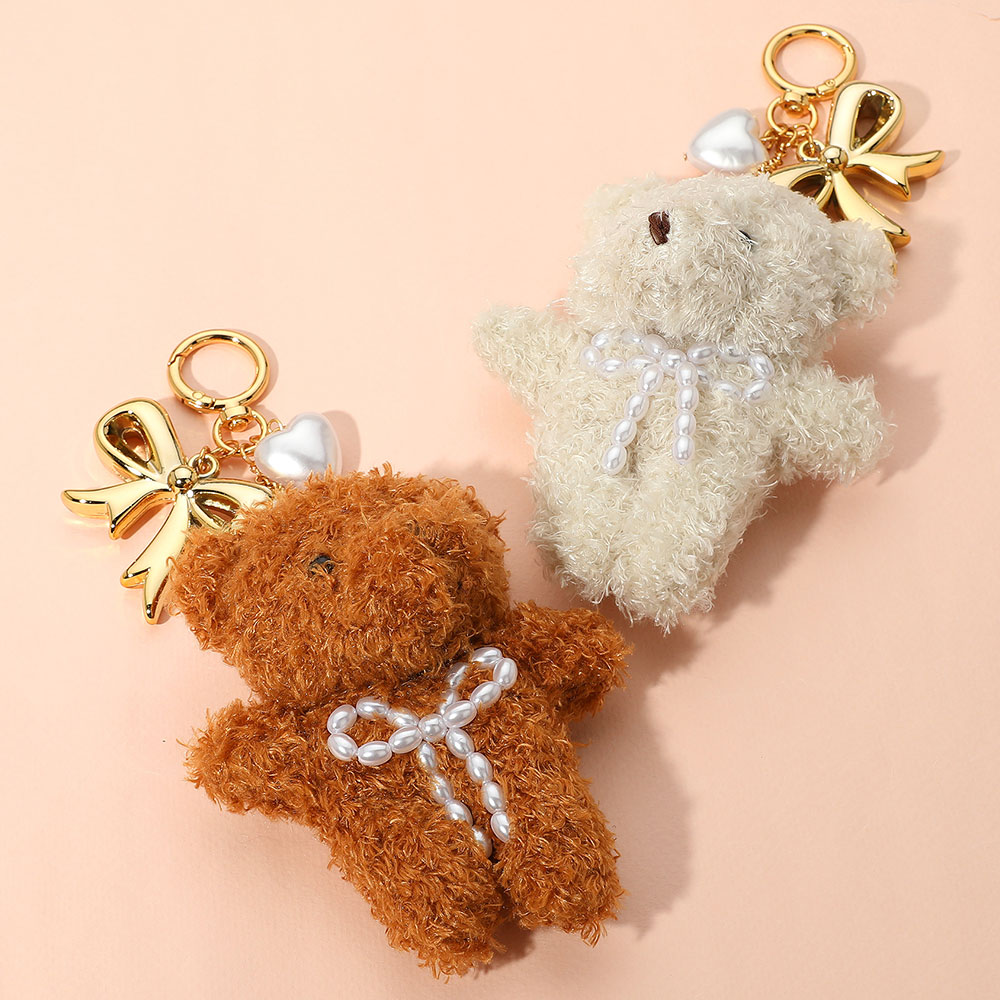 Pearl Heart Bow Charm Teddy Bear Plush Doll Keychain / Bag Charm