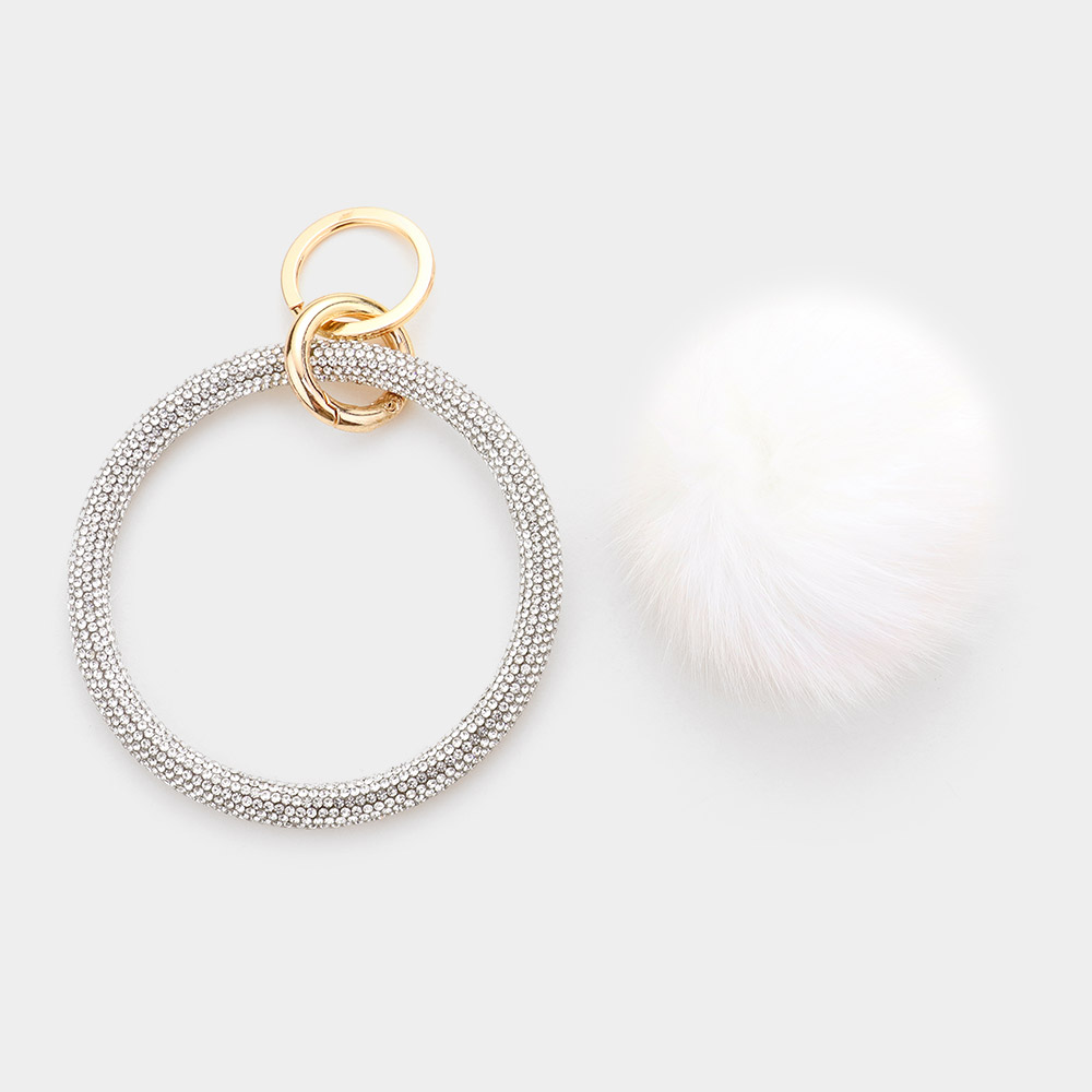 Pom Pom Rhinestone Pave Bangle Keychain / Bracelet