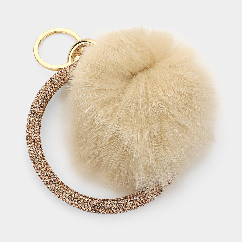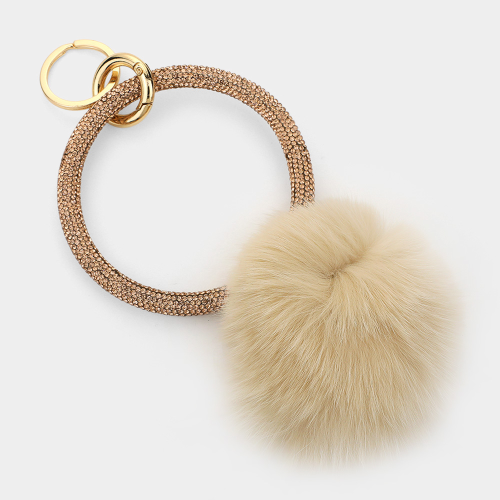Pom Pom Rhinestone Pave Bangle Keychain / Bracelet