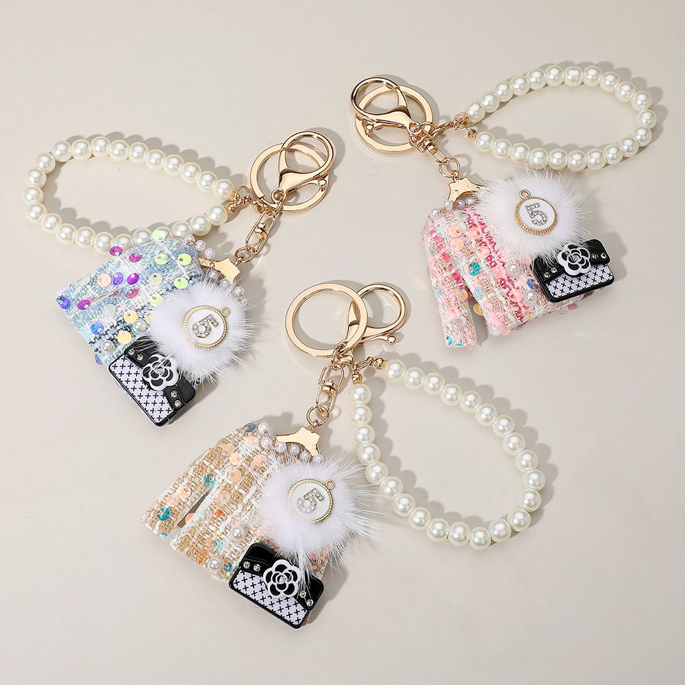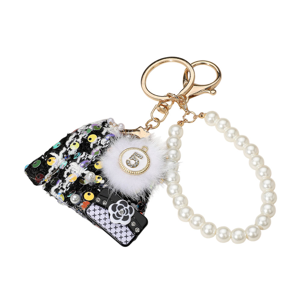 Sequin Beaded Pom Brooch Flower Handbag Tweed Jacket Pearl Chain Keychain Bag Charm