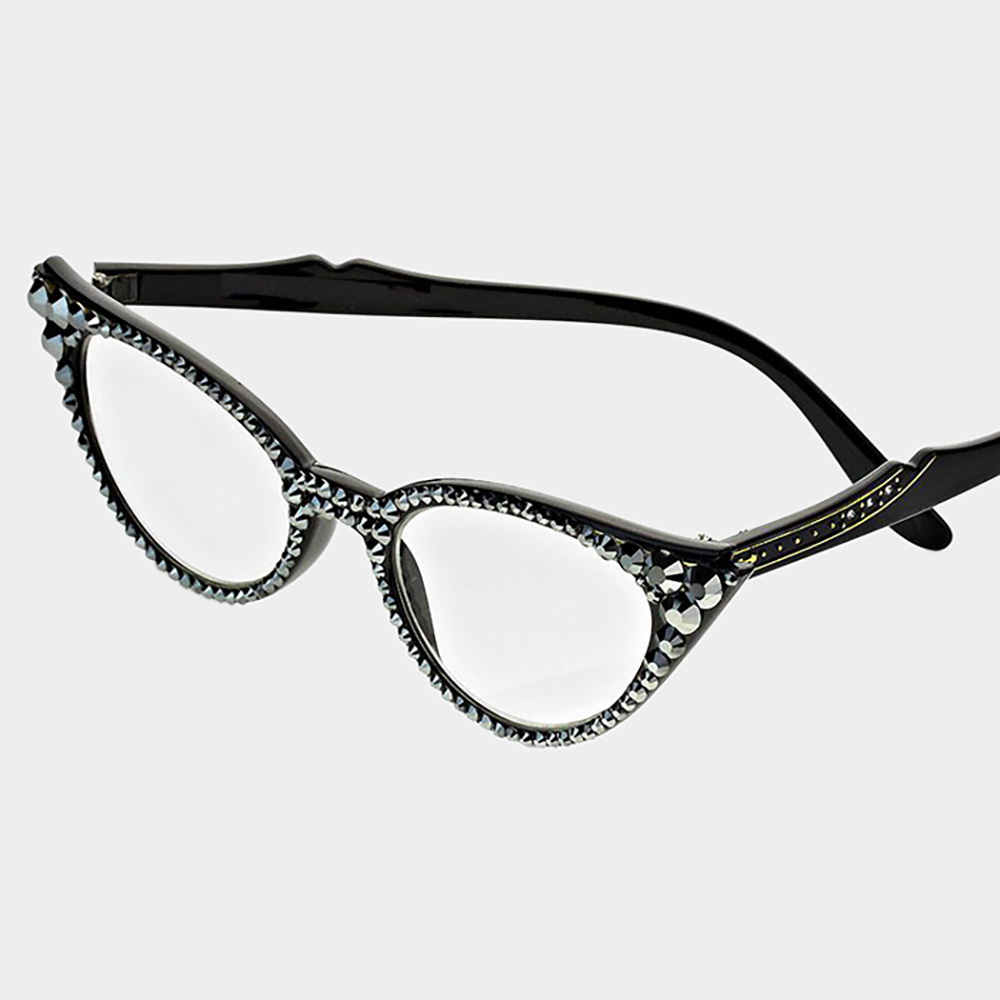 • Bold cat-eye glasses adorned with shimmering rhinestones for a glamorous statement look. Perfect for parties, costumes, themed events, or adding sparkle to everyday style, these frames bring vintage flair with a modern twist.
