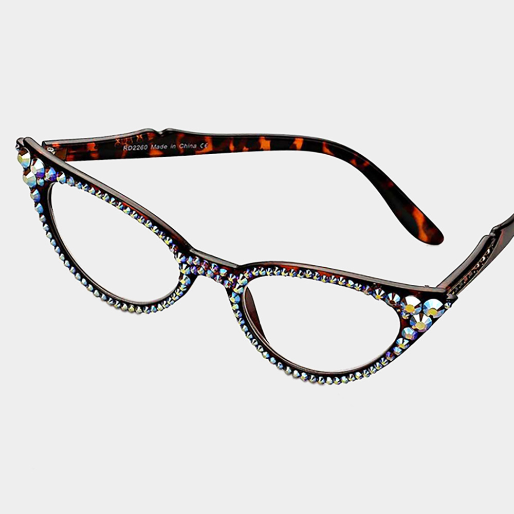 • Bold cat-eye glasses adorned with shimmering rhinestones for a glamorous statement look. Perfect for parties, costumes, themed events, or adding sparkle to everyday style, these frames bring vintage flair with a modern twist.