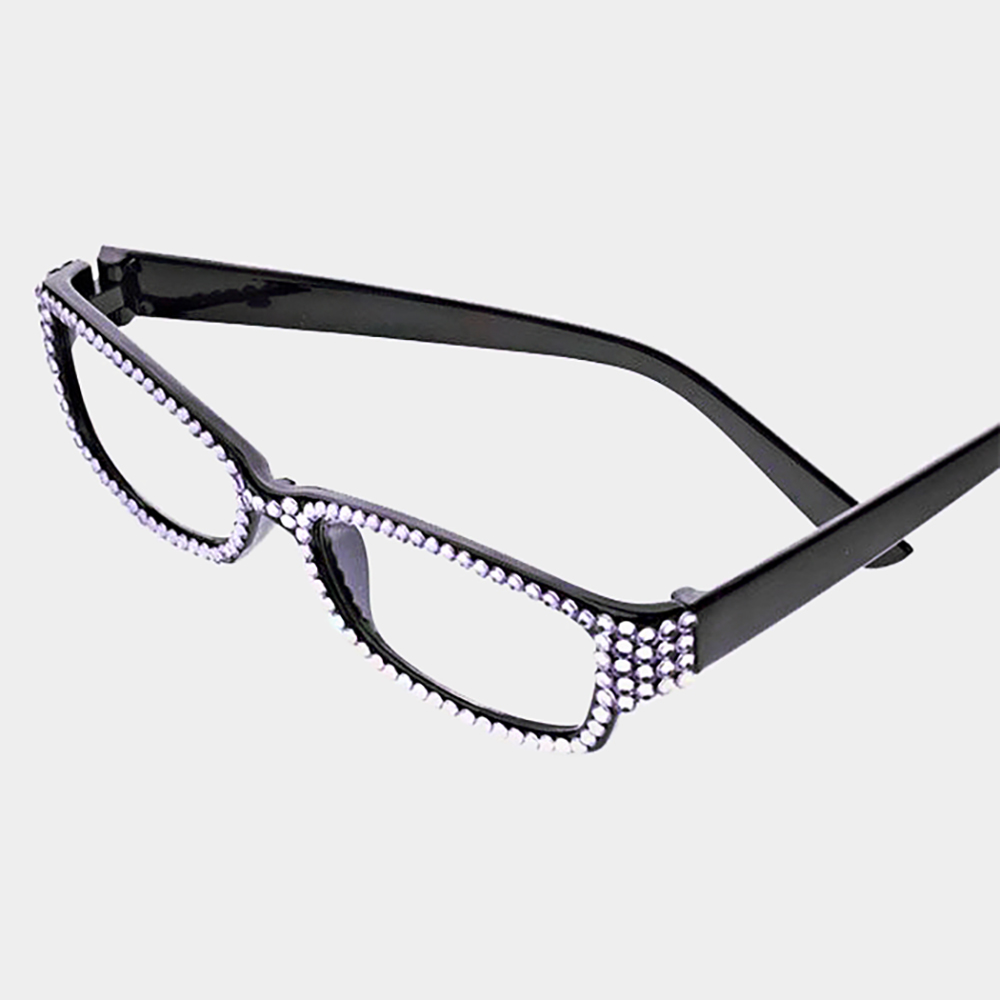 • Stylish rectangle glasses accented with sparkling rhinestones for a bold and playful look. Perfect for parties, themed events, or everyday wear, these frames combine comfort and standout glamour in a fun statement accessory.