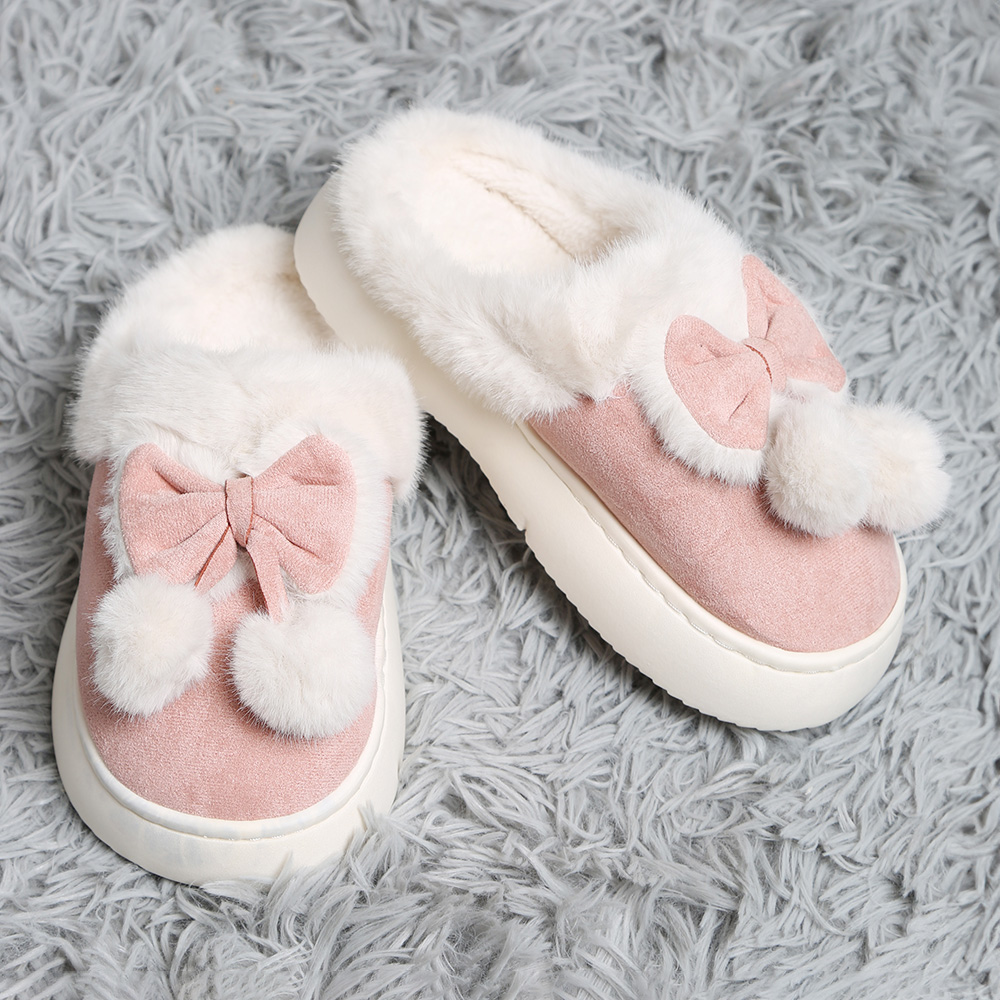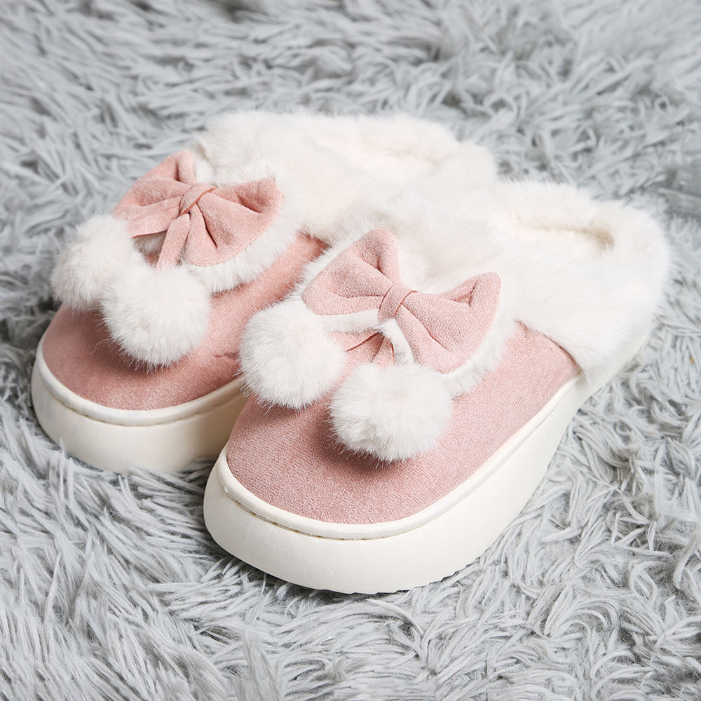 Bow Pom Pom Pointed Faux Suede Indoor Floor Slippers