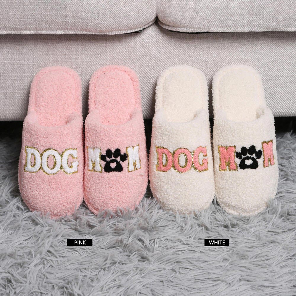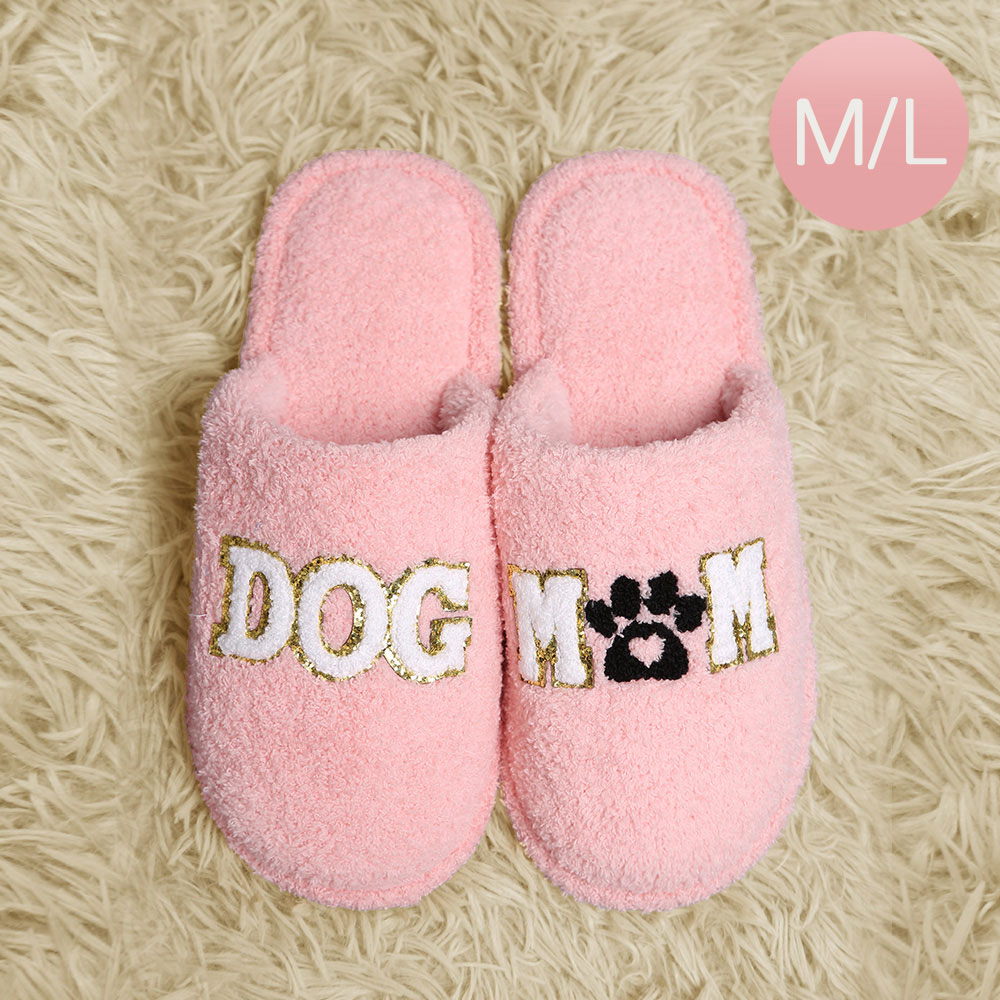 Details • Size : M/L (Women 8-10, Men 7-9) • Material : 100% Poly. Microfiber • Soft indoor slippers with a bold "Dog Mom" graphic and paw print detail. Sized M/L for comfy home wear, these cute slip-ons are ideal for pet lovers who enjoy warmth and style around the house.