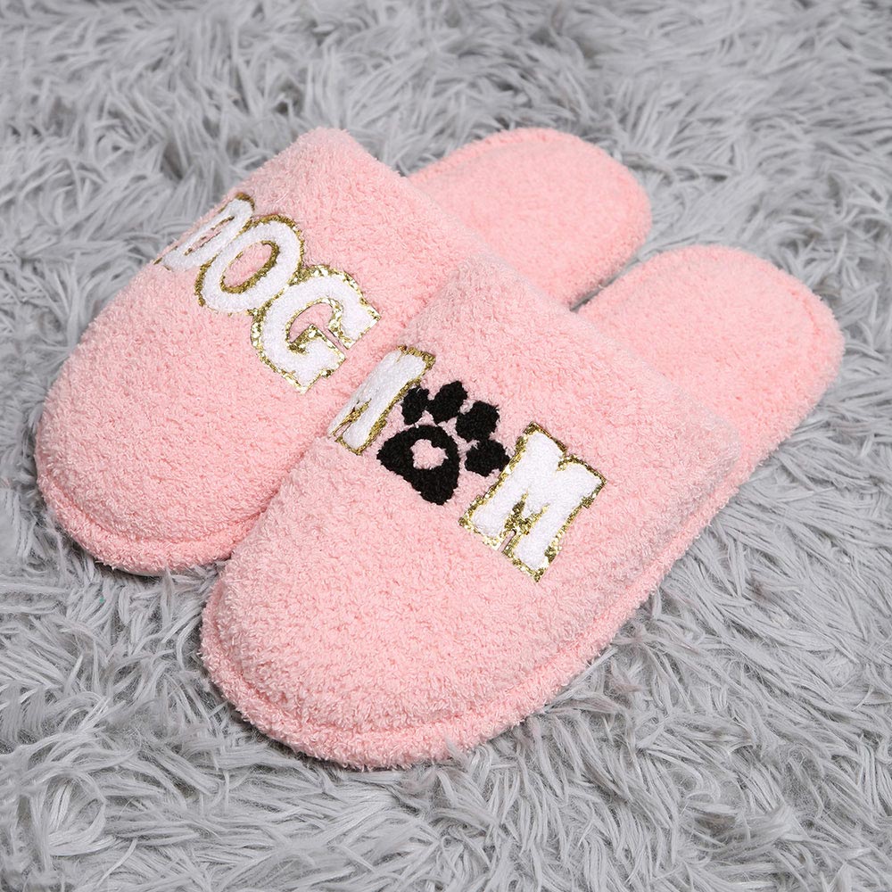 Dog Mom Message Paw Pointed Soft Home Indoor Floor Slippers