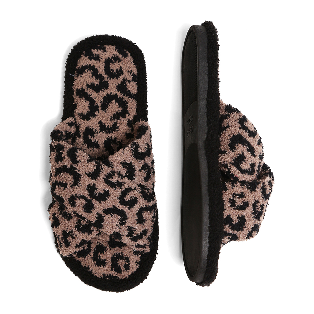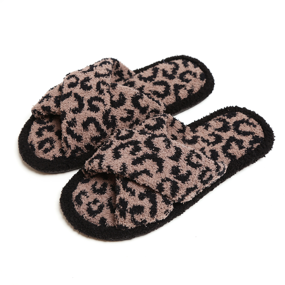 Leopard Patterned Crisscross Soft Home Indoor Floor Slippers