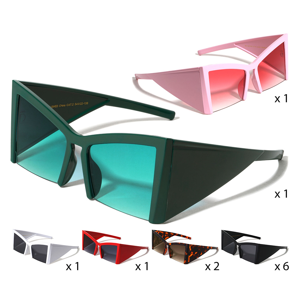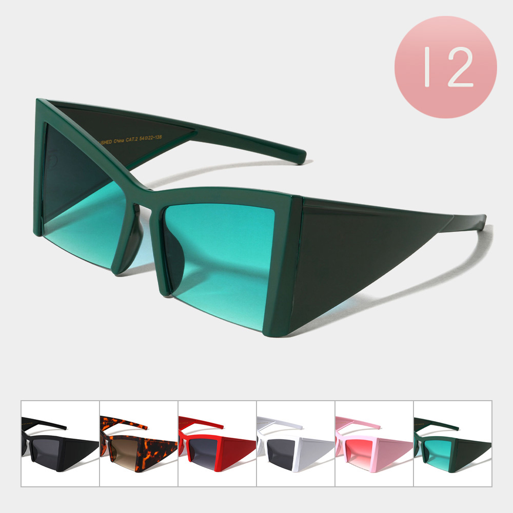 12PCS - Bold Angular Geometric Shape Tinted Lens Sunglasses