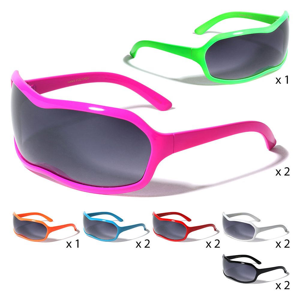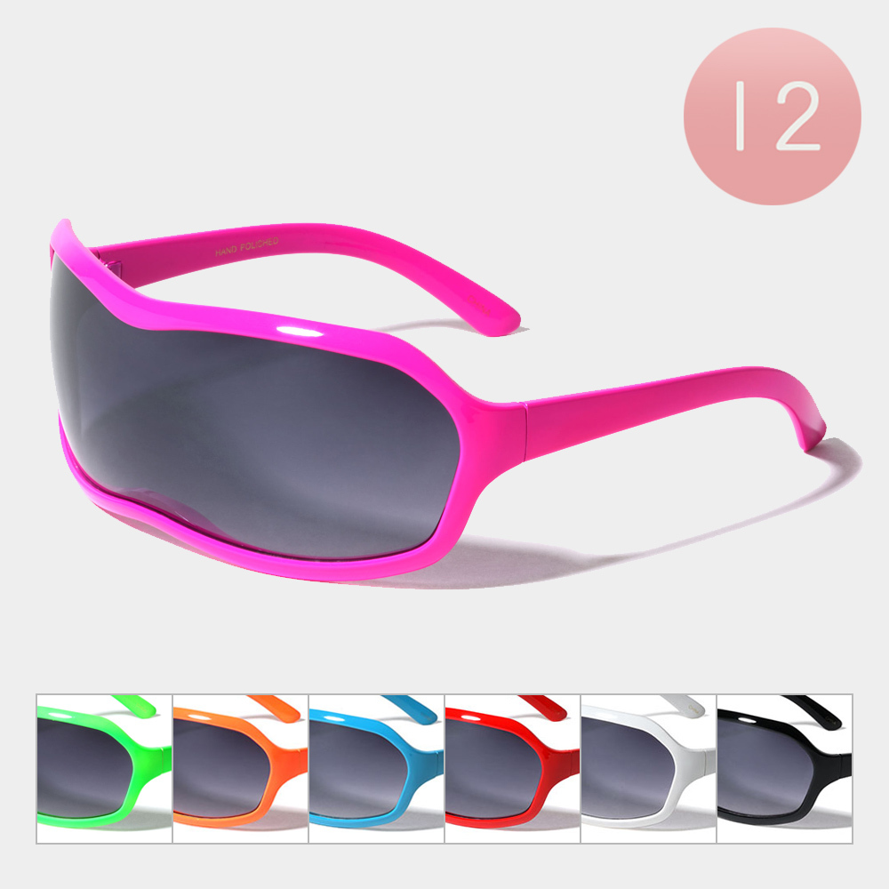 12PCS - Plain Color Shield Visor Lens Sunglasses