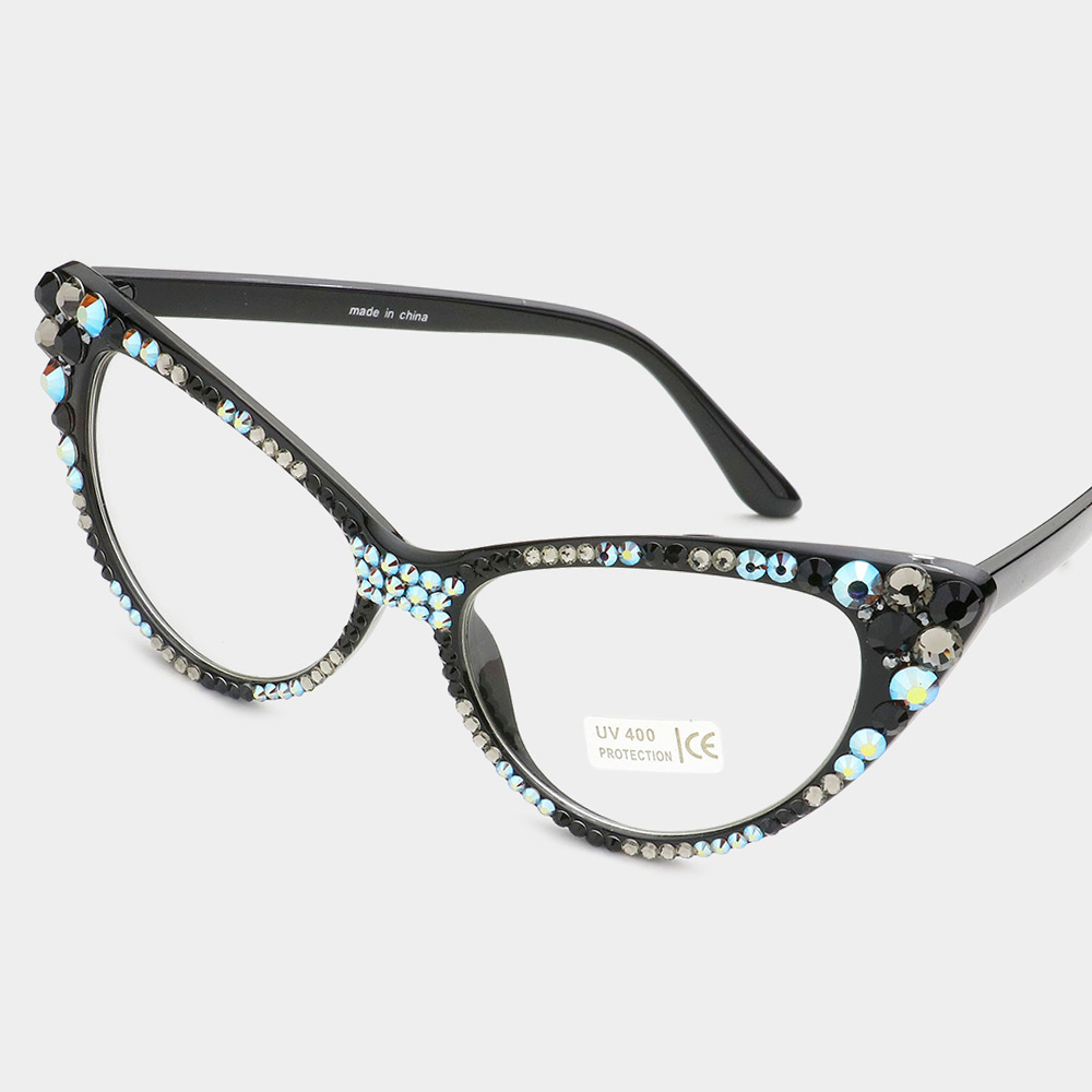 American USA Flag Crystal Cat Eye Clear Lens Sunglasses
