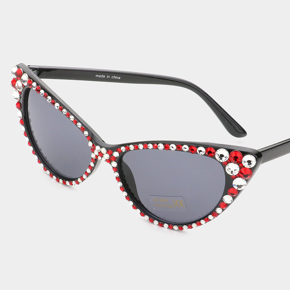 American USA Flag Crystal Cat Eye Clear Lens Sunglasses