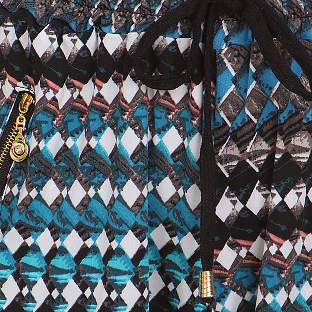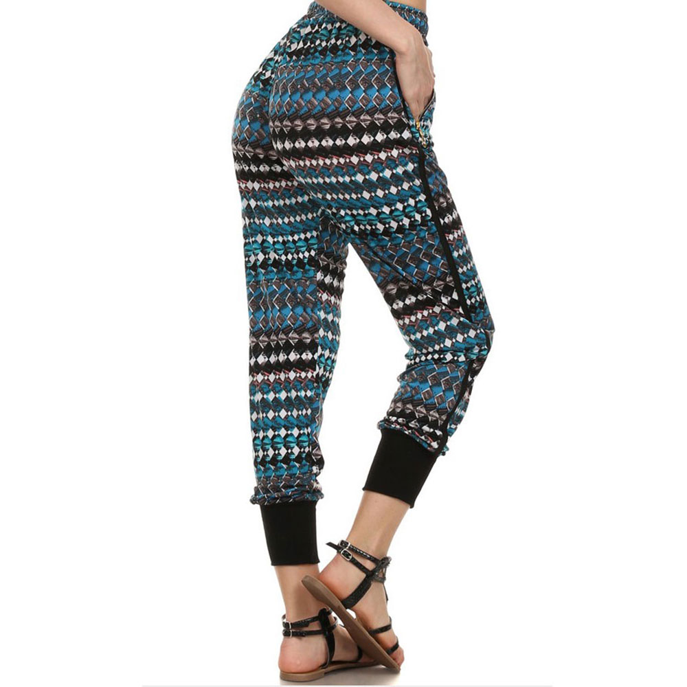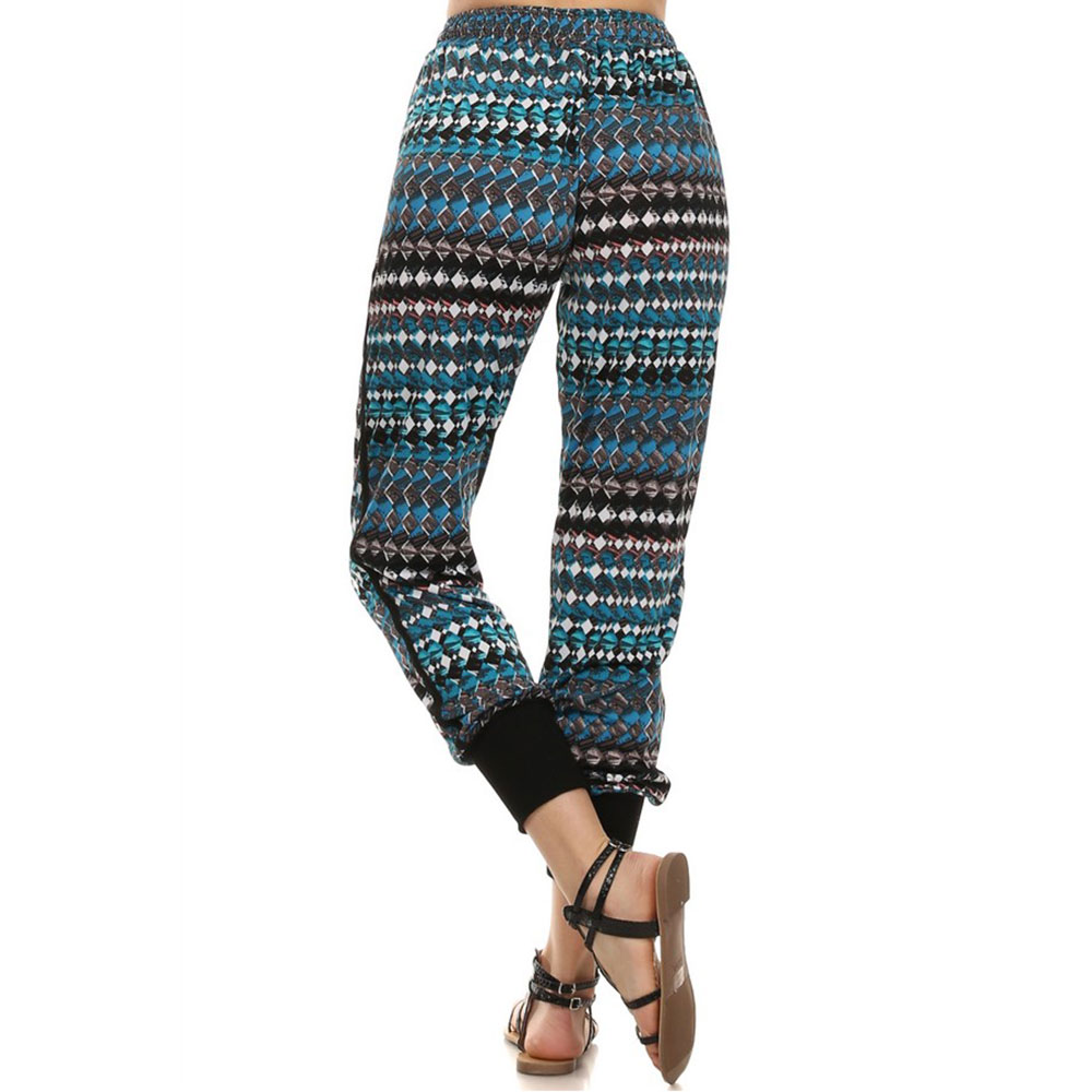 Details • Size : Medium • Women's Joggers with Elastic waist and Draw String, has ribbing at hem. Blue square bead print. 2 pocket, jogger pants with drawstring and zipper embellishment. • • Material : 92%Polyester, 8%Spandex • **Please Note : Prints may vary per piece due to fabric cutting
