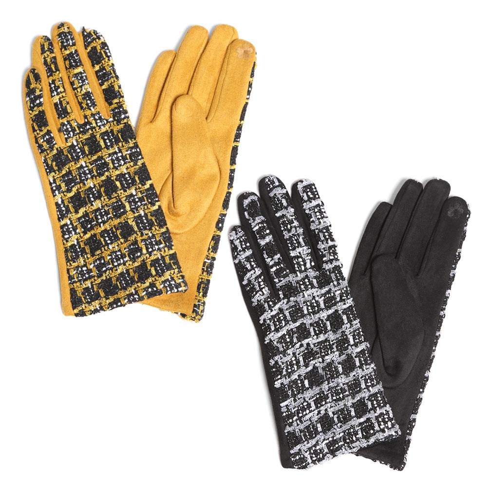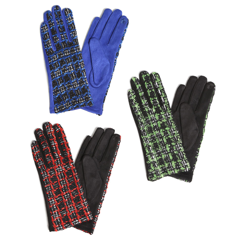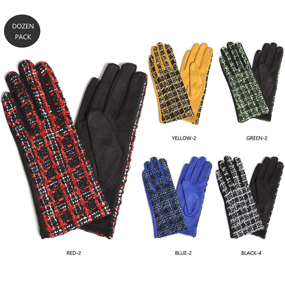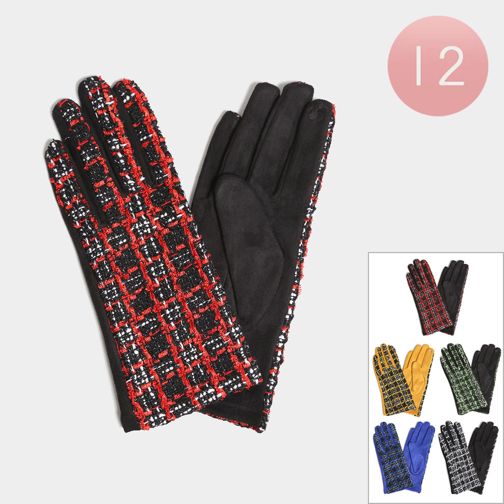 12Pairs - Plaid Check Patterned Tweed Touch Smart Gloves