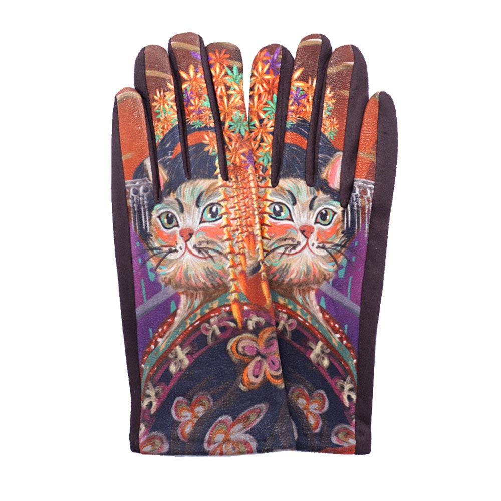 Cat Printed Smart Touch Gloves