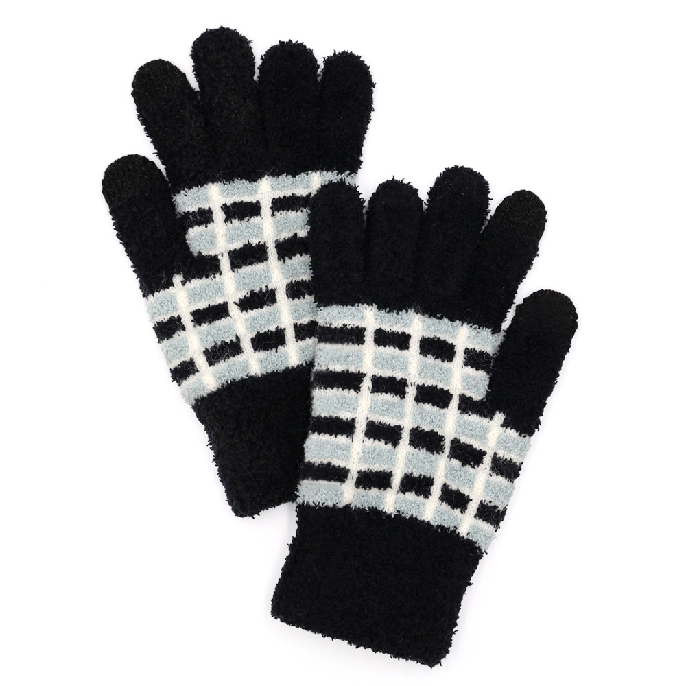 Details • Size : One Size • Material : 100% Polyester • Smart Touch • Soft and cozy winter gloves designed with a stylish grid pattern and smart-touch fingertips for easy phone use on the go. These warm, comfortable gloves offer a snug fit, ideal for daily commutes, outdoor activities, or gifting. A practical cold-weather essential with modern functionality.