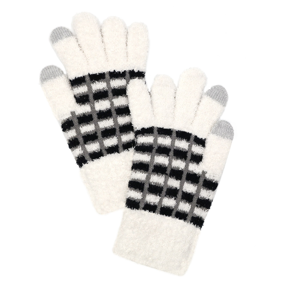 Details • Size : One Size • Material : 100% Polyester • Smart Touch • Soft and cozy winter gloves designed with a stylish grid pattern and smart-touch fingertips for easy phone use on the go. These warm, comfortable gloves offer a snug fit, ideal for daily commutes, outdoor activities, or gifting. A practical cold-weather essential with modern functionality.